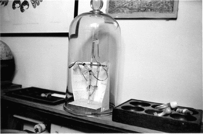 Depois de encerrada a entrevista, notei ao meu lado algo que me parecia uma árvore em miniatura, cujas folhas eram pedacinhos de papel com anotações, colados em "galhos" revirados e perfeitamente simétricos. Olhei mais de perto, e percebi que o objeto, protegido por uma redoma de vidro (foto) é a estrutura, em três dimensões, de um grupo de mitos, cuja representação gráfica se encontra à página 81 de L’origine des manières de table (Mitológicas III). A própria página, unida à página 80 do livro, constitui um "fundo" para a "árvore" de mitos, dentro da redoma (reproduzidas a seguir a partir da 1ª edição, de L'origine des manières de table, Paris, Plon, 1968). Evidentemente fascinada pelo objeto, perguntei a Lévi-Strauss se costumava construir assim estruturas míticas. Respondeu-me que sim, que as construia conforme as percebia nos mitos, com os pedaços de papel, barbante, tesoura e cola que sempre tinha à mão. Alguns desses objetos, continuou, "eram como móbiles à la Calder", e ficavam pendurados pelo laboratório de antropologia. Mas eram muito frágeis, e logo se destruíram. Finalmente, tinha sobrado apenas aquela. "Mas então o senhor é um bricoleur também no sentido primeiro do termo [que remete, como se sabe, a trabalhos manuais]?" Sorrindo, respondeu-me que sim, gostava de usar as mãos para construir coisas desde a infância…